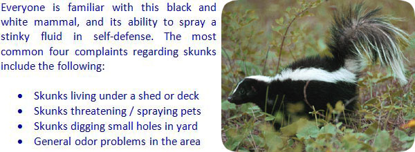 If you are having an issue with a skunk around your home, the best method of removal is live trapping. Click here to learn